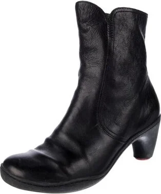 Camper Leather Ankle Boots Black Round-Toes Exposed Zip Closure at Sides Size not listed, estimated from measurements. Unfortunately, due to restrictions, this item may not be eligible for shipping in Read more