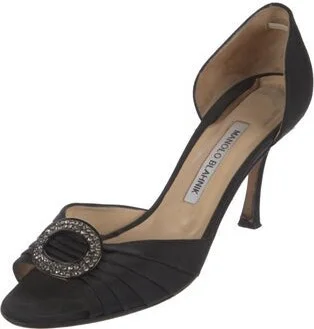 Manolo Blahnik Satin Sandals Black Crystal Embellishments Fit: This style typically runs narrow and a half size small.