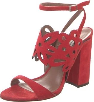Tabitha Simmons Suede Sandals Red Multistrap & Buckle Closure at Ankles