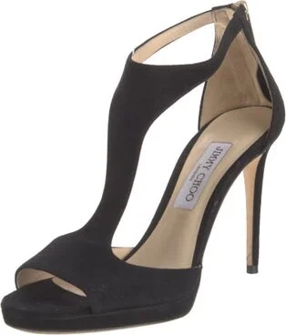 Jimmy Choo Suede T-Strap Pumps Black Peep-Toes Fit: This style typically runs a half size small. Read more