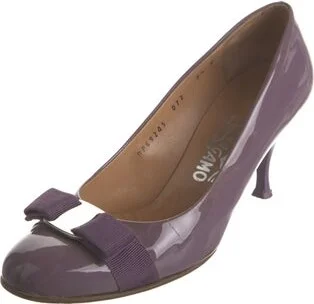 Salvatore Ferragamo Patent Leather Pumps Purple Vara Bow Accent Grosgrain & Bow Accents Round-Toes Fit: This style typically runs a half size small.
