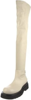 Bottega Veneta Leather Over-The-Knee Sock Boots Neutrals Round-Toes Exposed Zip Closure at Sides Unfortunately, due to restrictions, this item may not be eligible for shipping in all areas. Read more