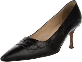 Manolo Blahnik Leather Pumps Black Semi-Pointed Toes Fit: This style typically runs narrow and a half size small. Unfortunately, due to restrictions, this item may not be eligible for shipping in all areas.