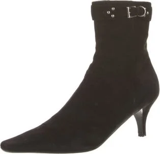 Prada Suede Ankle Boots Black Semi-Pointed Toes Exposed Zip Closure at Sides Includes Dust Bag Fit: This style typically runs a half size small.