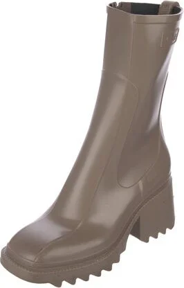 Chloé Rubber Mid-Calf Rain Boots Neutrals Square-Toes Platform Exposed Zip Closure at Sides Fit: This style typically runs a half size small. Read more