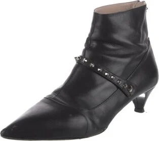 Miu Miu Leather Ankle Boots Black Pointed-Toes with Studded Accents Wrap-Around Straps & Exposed Zip Closure at Sides Includes Box & Dust Bag Designer Fit: Boots by Miu Miu typically run a half size s Read more