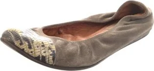 Lanvin Suede Ballet Flats Neutrals Animal Print Round-Toes Fit: This style typically runs a half size small. Read more