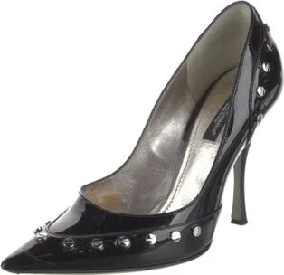 Dolce & Gabbana Patent Leather Pumps Black Pointed-Toes with Studded Accents Fit: This style typically runs a half size small. Read more
