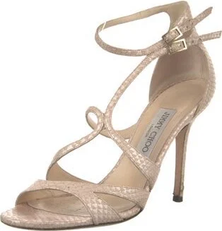 Jimmy Choo Leather Sandals Neutrals Cutout Accent Multistrap & Buckle Closure at Ankles Includes Box & Dust Bag Fit: This style typically runs a full size small. Unfortunately, due to restrictions, th Read more