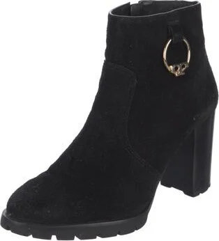 Tory Burch Suede Ankle Boots Black Round-Toes Platform Concealed Zip Closure at Sides Designer Fit: This designer typically runs true to size.