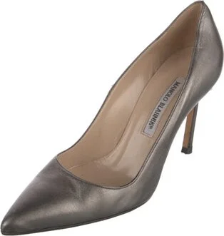 Manolo Blahnik Leather Pumps Black Semi-Pointed Toes Includes Dust Bag Fit: This style typically runs narrow and a half size small. Unfortunately, due to restrictions, this item may not be eligible for shipping in all areas.