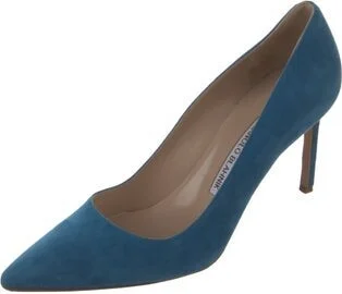 Manolo Blahnik Suede Pumps Blue Semi-Pointed Toes Fit: This style typically runs narrow and a half size small. Read more