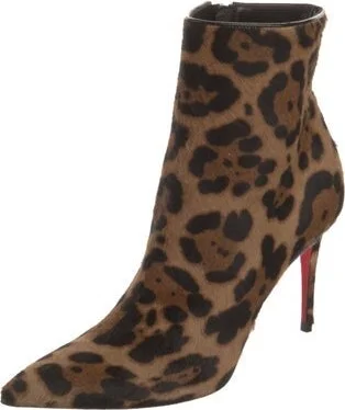 Christian Louboutin Ponyhair Ankle Boots Brown Animal Print Pointed-Toes Exposed Zip Closure at Sides Designer Fit: This style typically runs a full size small. Read more