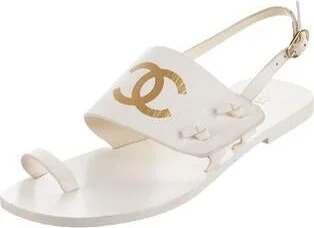Chanel Goat Leather Slingback Sandals From the 2021 Collection by Virginie Viard White Interlocking CC Logo Multistrap & Buckle Closure at Ankles Designer Fit: This style typically runs narrow and a h Read more