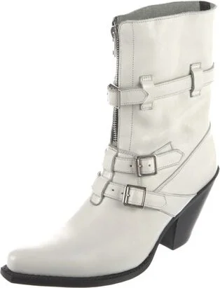 Celine Leather Ankle Moto Boots White Pointed-Toes Multistrap & Exposed Zip Closure at Uppers Includes Box & Dust Bag Designer Fit: Boots by Celine typically run a half size small. Unfortunately, due Read more