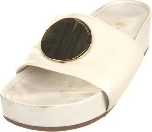 Tory Burch Leather Slides White Studded Accents Designer Fit: This designer typically runs true to size. Unfortunately, due to restrictions, this item may not be eligible for shipping in all areas. Read more