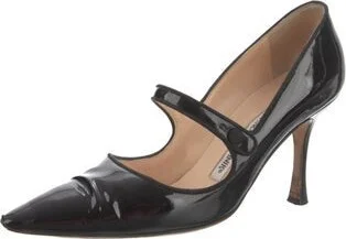 Manolo Blahnik Patent Leather Pumps Black Semi-Pointed Toes Mary Jane Strap & Button Closure at Uppers Includes Box Fit: This style typically runs narrow and a half size small. Read more