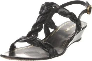 Prada Patent Leather Slingback Sandals Black Braided Accents Multistrap & Buckle Closure at Ankles Designer Fit: Sandals by Prada typically run a half size small. Read more