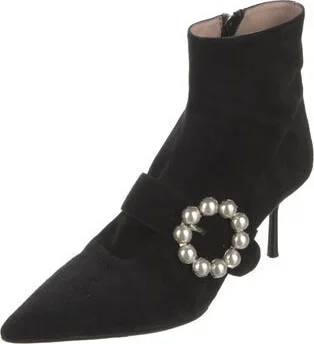 Miu Miu Suede Ankle Boots Black Pointed-Toes with Beaded Accents Concealed Zip Closure at Sides Designer Fit: Boots by Miu Miu typically run a half size small. Read more