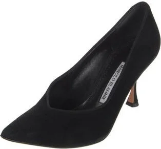 Manolo Blahnik Suede Pumps Black Semi-Pointed Toes Fit: This style typically runs narrow and a half size small. Read more