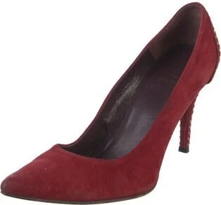 Stuart Weitzman Suede Pumps Red Round-Toes with Studded Accents Designer Fit: This designer typically runs true to size. Read more