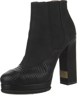 Chanel Leather Ankle Chelsea Boots From the 2014 Collection by Karl Lagerfeld Black Interlocking CC Logo Round-Toes Platform Fit: This style typically runs a full size small. Unfortunately, due to res Read more