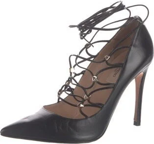 Valentino Leather Pumps Black Rockstud Accents Pointed-Toes Wrap-Around Straps Designer Fit: Pumps by Valentino typically run a half size small. Unfortunately, due to restrictions, this item may not be eligible for shipping in all areas.