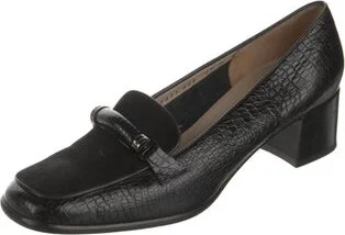Salvatore Ferragamo Leather Pumps Black Vara Bow Accent Square-Toes Fit: This style typically runs a half size small. Unfortunately, due to restrictions, this item may not be eligible for shipping in all areas.