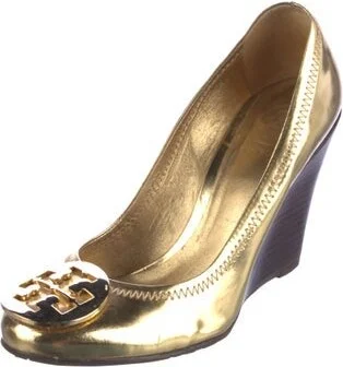Tory Burch Leather Pumps Gold & Metallic Round-Toes Designer Fit: This designer typically runs true to size. Unfortunately, due to restrictions, this item may not be eligible for shipping in all areas Read more