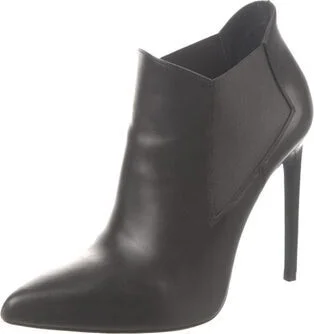 Saint Laurent Leather Ankle Boots Black Pointed-Toes Platform Includes Box, Dust Bag & Additional Embellishments Fit: This style typically runs a half size small. Unfortunately, due to restrictions, t Read more