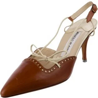 Manolo Blahnik Leather Slingback Pumps Brown Pointed-Toes Fit: This style typically runs narrow and a half size small. Unfortunately, due to restrictions, this item may not be eligible for shipping in Read more