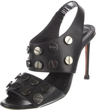 Manolo Blahnik Leather Slingback Sandals Black Buckle Closure at Ankles Fit: This style typically runs narrow and a half size small. Unfortunately, due to restrictions, this item may not be eligible for shipping in all areas.