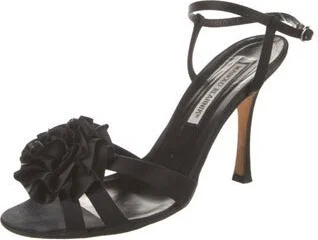 Manolo Blahnik Satin Slingback Pumps Black Round-Toes Wrap-Around Straps & Buckle Closure at Ankles Includes Box & Dust Bag Fit: This style typically runs narrow and a half size small. Read more