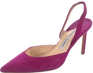 Manolo Blahnik Suede Slingback Pumps Pink Pointed-Toes Fit: This style typically runs narrow and a half size small. Read more