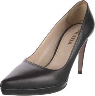 Prada Leather Pumps Black Semi-Pointed Toes Platform Designer Fit: Pumps by Prada typically run a half size small. Unfortunately, due to restrictions, this item may not be eligible for shipping in all Read more