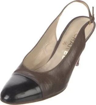 Chanel Leather Slingback Pumps Grey Interlocking CC Logo Semi-Pointed Toes Buckle Closure at Ankles Designer Fit: This style typically runs narrow and a half size small. Unfortunately, due to restrict Read more