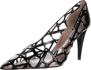 Valentino Patent Leather Pumps Black Leather Trim Pointed-Toes Includes Box & Dust Bag Designer Fit: Pumps by Valentino typically run a half size small.
