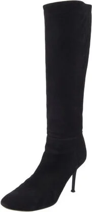 Jimmy Choo Suede Knee-High Boots Black Semi-Pointed Toes Zip Closures at Shafts Fit: This style typically runs a full size small. Read more