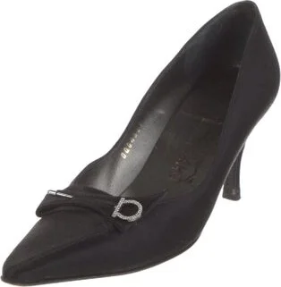 Salvatore Ferragamo Satin Pumps Black Semi-Pointed Toes with Crystal Embellishments Platform Includes Box Fit: This style typically runs a half size small.