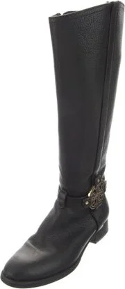 Tory Burch Leather Knee-High Riding Boots Black Round-Toes Exposed Zip Closure at Sides Designer Fit: This designer typically runs true to size. Unfortunately, due to restrictions, this item may not b Read more