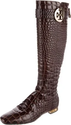 Tory Burch Leather Knee-High Riding Boots Brown Square-Toes Designer Fit: This designer typically runs true to size. Unfortunately, due to restrictions, this item may not be eligible for shipping in all areas.