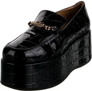 Ganni Embossed Leather Loafers Black Round-Toes Platform Read more