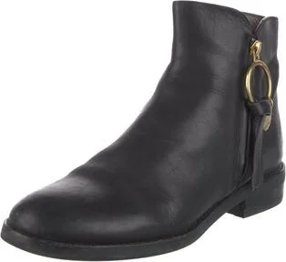 See by Chloé Leather Ankle Moto Boots Black Round-Toes Concealed Zip Closure at Sides Unfortunately, due to restrictions, this item may not be eligible for shipping in all areas. Read more