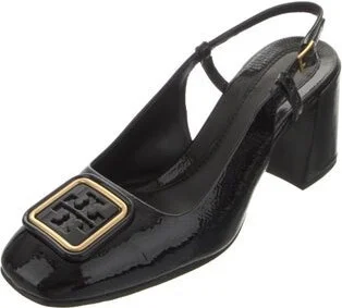Tory Burch Patent Leather Slingback Pumps Black Square-Toes Buckle Closure at Ankles Designer Fit: This designer typically runs true to size.
