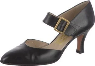 Salvatore Ferragamo Leather D'Orsay Pumps Black Semi-Pointed Toes Mary Jane Strap & Buckle Closure At Uppers Fit: This style typically runs a half size small. Unfortunately, due to restrictions, this Read more
