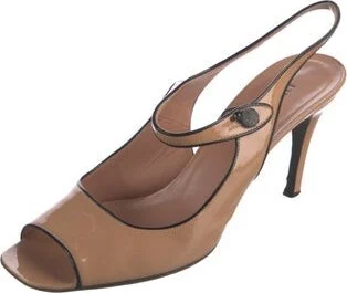 Prada Patent Leather Slingback Sandals Brown Includes Box & Dust Bag Designer Fit: Sandals by Prada typically run a half size small.