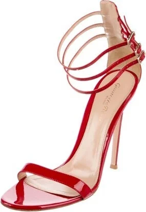 Gianvito Rossi Patent Leather Sandals Red Wrap-Around Straps & Buckle Closure at Ankles Read more