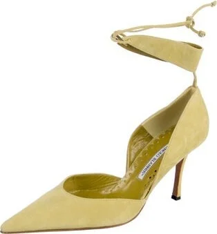 Manolo Blahnik Suede D'Orsay Pumps Green Pointed-Toes Wrap-Around Straps & Tie Closures Fit: This style typically runs narrow and a half size small. Read more