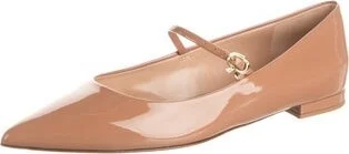 Gianvito Rossi Patent Leather Mary Jane Flats Neutrals Semi-Pointed Toes Mary Jane Strap & Buckle Closure at Sides Includes Box & Dust Bag Read more