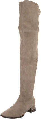 Tory Burch Suede Over-The-Knee Boots Neutrals Metal Trim Square-Toes Exposed Zip Closure at Sides Includes Dust Bag Designer Fit: This designer typically runs true to size. Read more